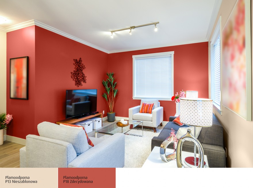 Żywe kolory na ścianę to także czerwień. I znowu – dobrze harmonizuje z bielą, ale jeśli chcesz uzyskać bardziej interesujący i głęboki efekt, nie ograniczaj się. Czerwień świetnie komponuje się z fioletem, interesujące zestawienie tworzy również z zielenią. Możesz także zestawić ją z kolorem pomarańczowym i amarantowym uzyskując klimat egzotycznych Indii. Czerwień to namiętność – skoro decydujesz się mieć ją na ścianie, zadbaj o odpowiednie towarzystwo dla niej.