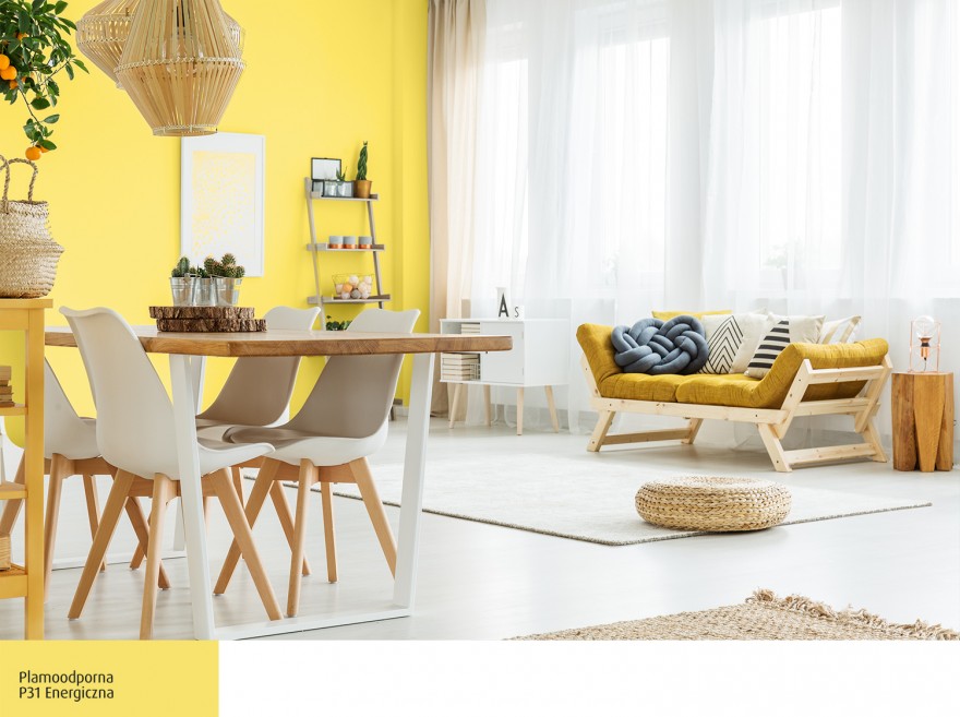 Zaproś słońce do wnętrza i postaw na żółty. Bardzo przyjemny, świeży efekt da połączenie bieli z jasnym, intensywnie słonecznym żółtym. Wnętrze pomalowane na takie kolory, z naturalnymi, drewnianymi dodatkami, będzie bardzo optymistyczne i ciepłe w odbiorze.
